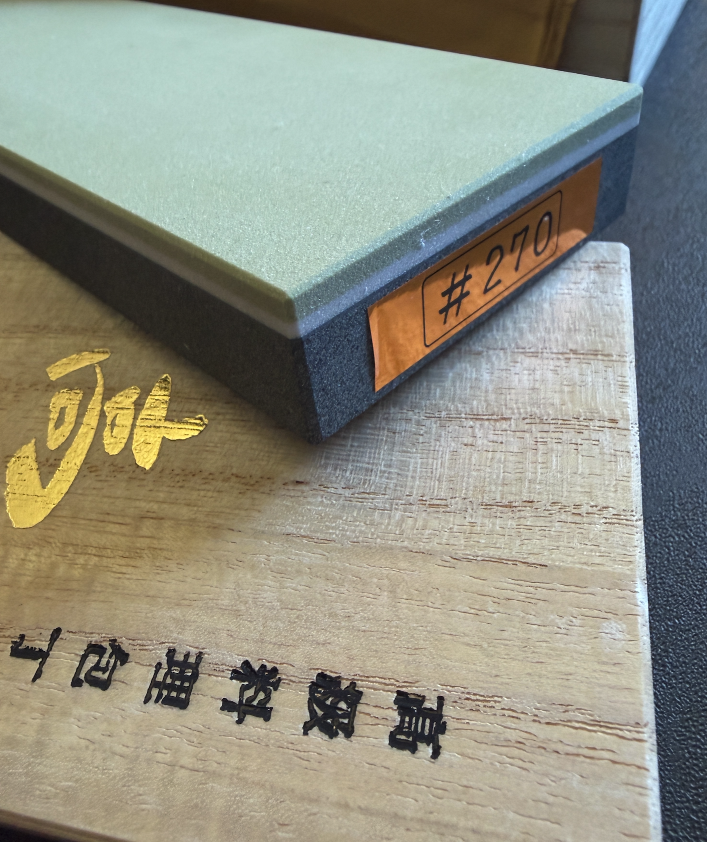 Today’s sharpening stone is probably the most expensive to date. It’s the very special FSK Vitrified in their brand new #270 grit size. It’s meant to be the perfect benchstone for thinning a knife, but also setting the bevel. I only know of a single store that sells these regularly internationally – and had to import them from Japan through them. Many thanks to Miura Knives for selling these outside of Japan.