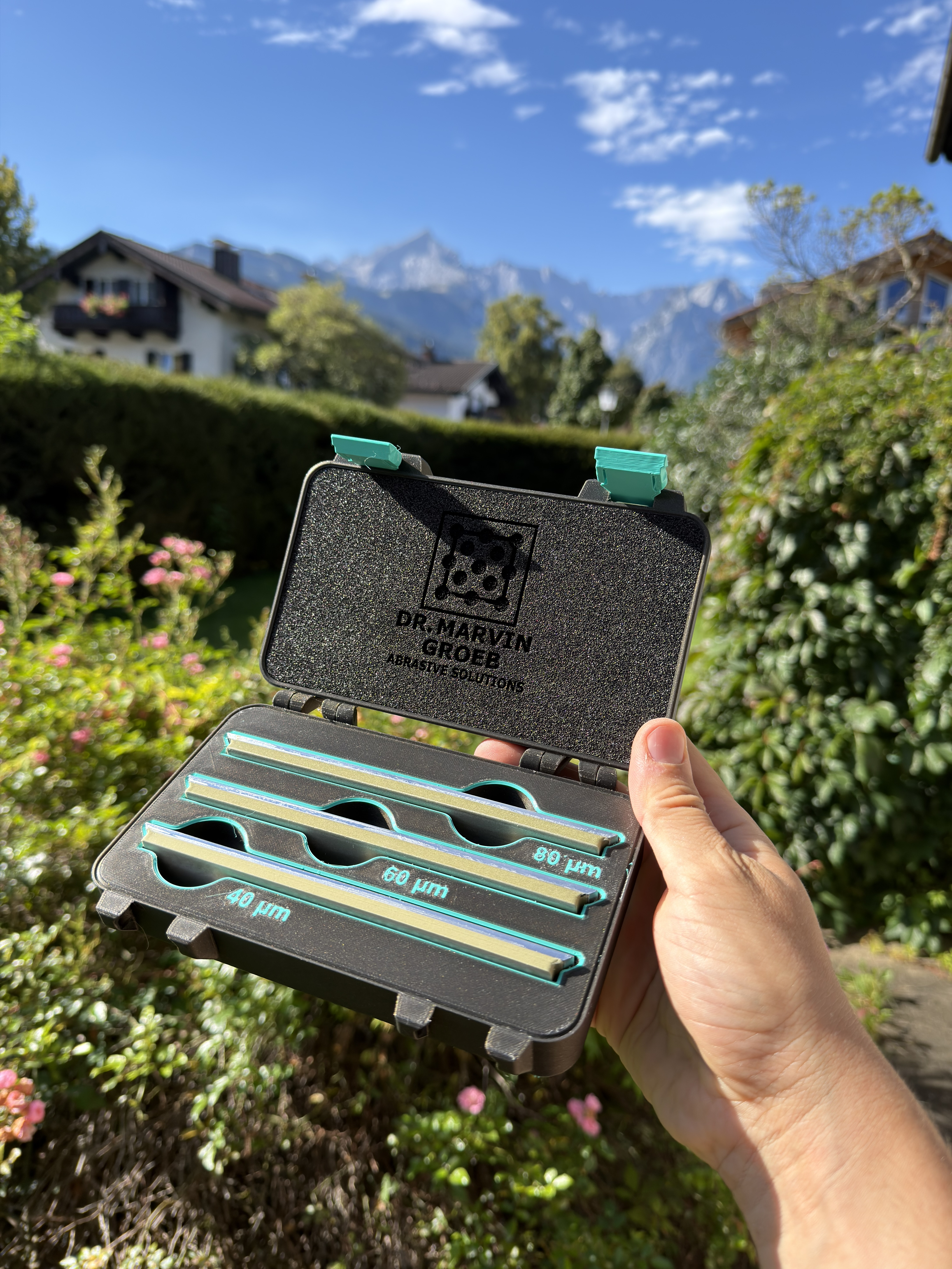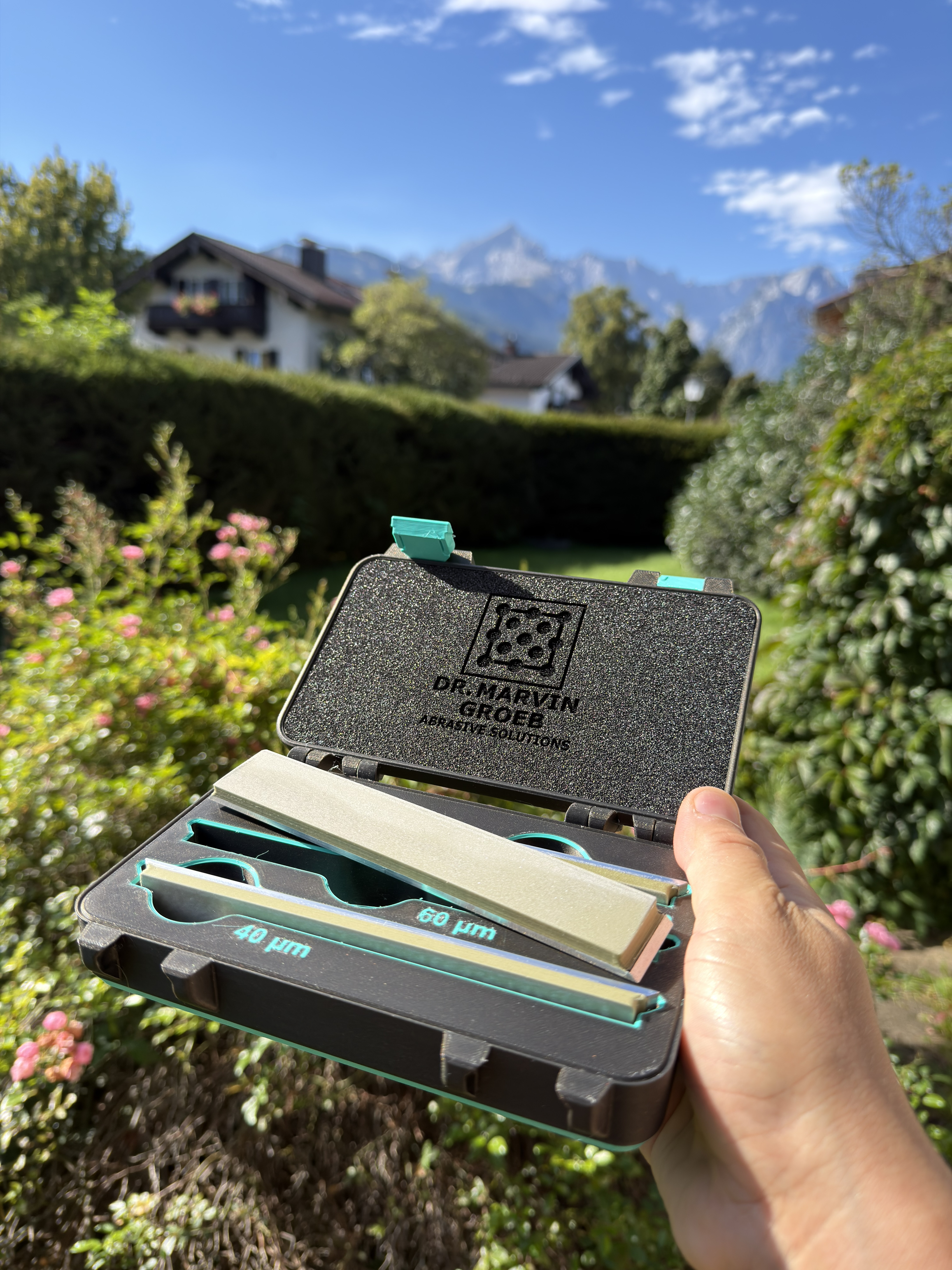 I am very proud to say that the resin, filament, foam, chemicals and aluminium are Made in Germany. Machining of the aluminium blanks was done in Germany. Only the diamond is imported, but meticulously quality controlled via SEM. I am absurdly proud to state that all abrasive stones are handmade by me in the German Alps.